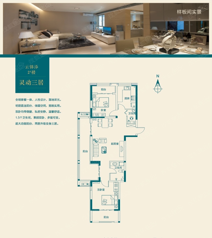 卧室:双卧均带侧窗,私密安静。 厨房:明厨直连阳台,储藏空间。 客厅:全明客餐一体,落地采光。